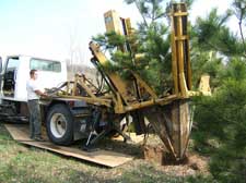 The spade truck will come and dig a hole where your new tree is to be planted. We will then go to a nursery, to pick up (dig) your tree, and return to your property and plant your new tree. If the tree you wish to move is already on your property it will be the same process. First dig the hole then dig the tree and place it in its new site. The plug of soil that is dug from the area where your new tree will now be, is used to fill the hole from where your tree came from. After planting with the tree spade, staking and mulching as well as root stimulating is recommended.
